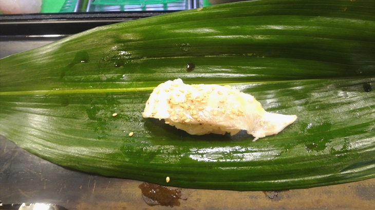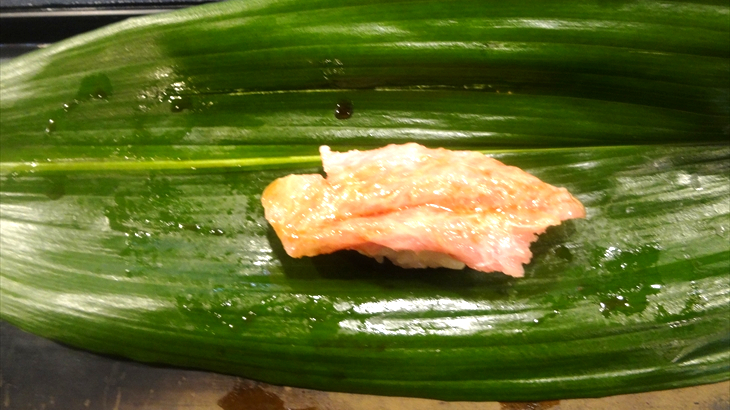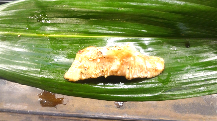 まず、たまご焼き握りから始まり、スミイカ、マグロの赤身、シメサバ、カワハギ、タイ、大トロが登場。炙ったり、ゴマ等の薬味を乗せ一貫一貫ひと手間加え握ってくれます。基本的には握り時に醤油を塗ってくれるのでお醤油をつけずにそのまま美味しく食べれます。