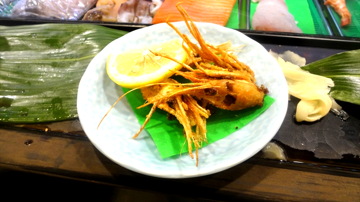 全14貫頂いた後、ボタンエビ頭の唐揚げと温かいお椀、そして手作りのお餅のようなお餅でないデザートが出てきてました。若い人はもっと食べれると思いますが、我々はこれで充分。ボトルも4割位残し、お会計(15,540円)しました。