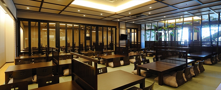 6階にお食事処・無料休憩室・憩い処があり、お座敷が沢山あり皆ここでくつろいでいます。運よく、窓際角のお座敷が開いていたのでそこで宴会開始です。