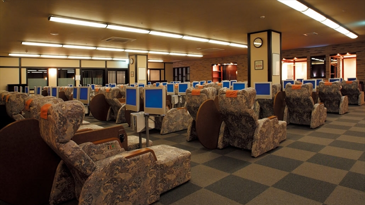 6階にお食事処・無料休憩室・憩い処があり、お座敷が沢山あり皆ここでくつろいでいます。運よく、窓際角のお座敷が開いていたのでそこで宴会開始です。