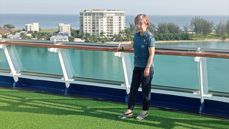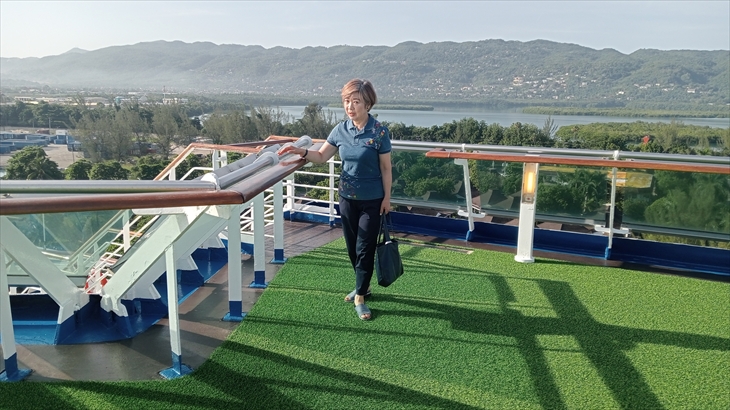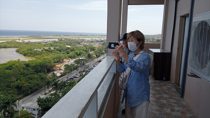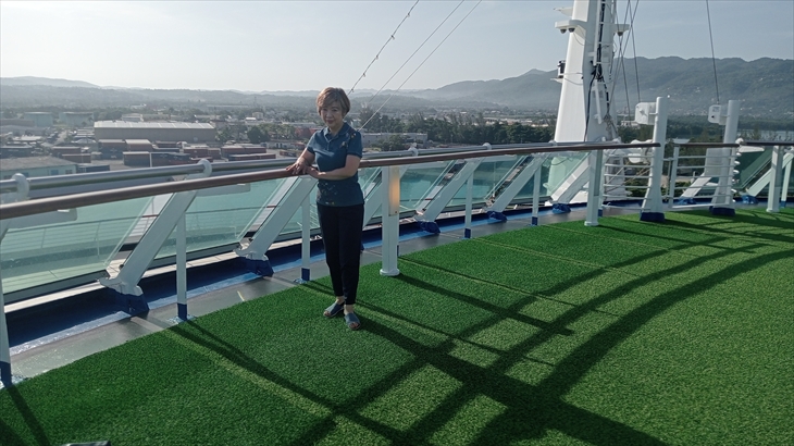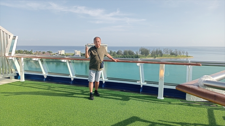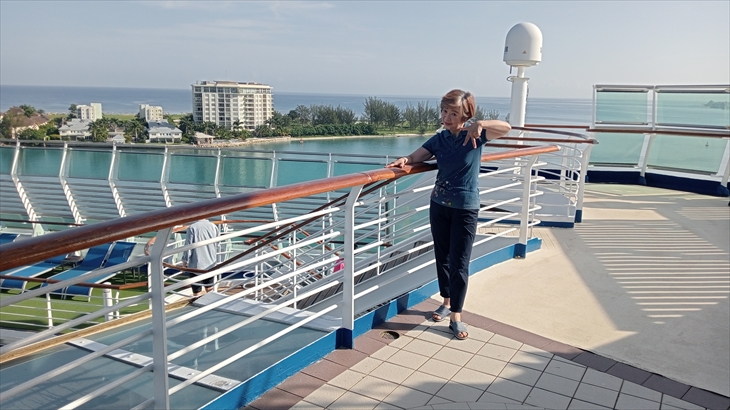 viatorツアーオプション「地元ガイド付きプライベート モンテゴ ベイ ハイライト ツアー」の運転手との待ち合わせは10時なので、簡単に朝食を済ませ、15階で記念写真撮影したり、ゆっくりとキャビンで準備していました。すると8時半頃突然室内電話で「予定していたツアーが取れていなかったアクシデント。一緒に観光出来ませんか?」とニューヨークでご一緒した神奈川県人会で顔なじみになった、安さんの奥さまヒロコさんからです。