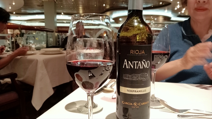 夕食は5階レストランでプライベートディナー、赤ワインも注文。怪しい運転手に比べ、船内のレストランのスタッフは優しく誠実。改めて安心に感謝し、美味しく食事を楽しめました。