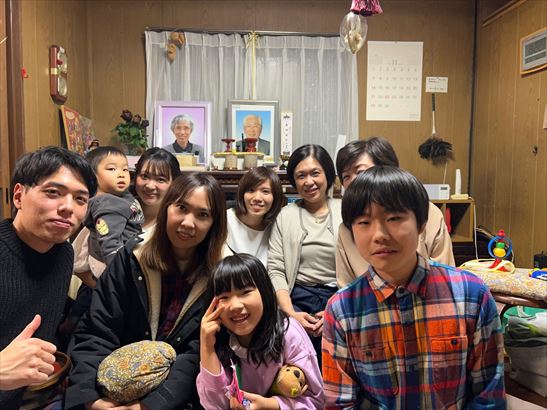 法事の開催方法を色々と姉妹で話し合った結果、こじんまりと解体前の実家で行うと決定したようです。姉妹夫婦の4名で15時ころから始まり、夕方になゆちゃんが合流しました。