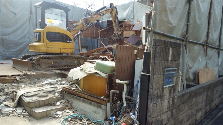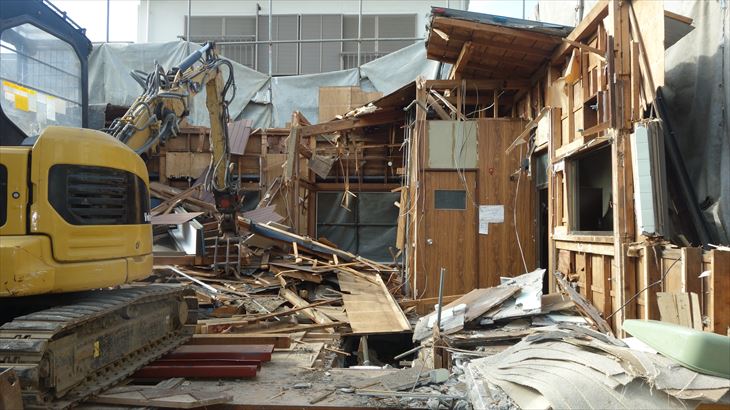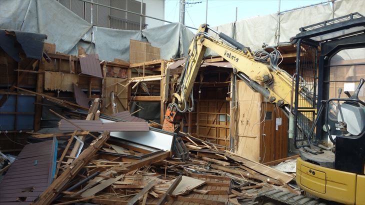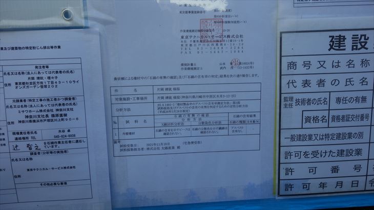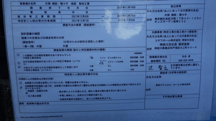 解体開始後1週間経過しました。養生といろいろな表示、解体の進捗は約70%くらい進んでいました。
