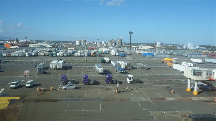 朝方の船上は曇りでしたが、北海道に到着したら晴れていました。