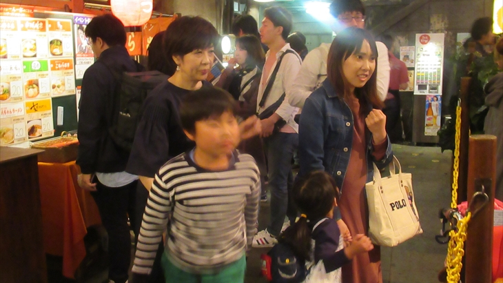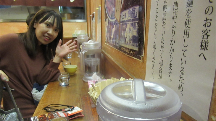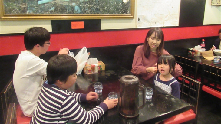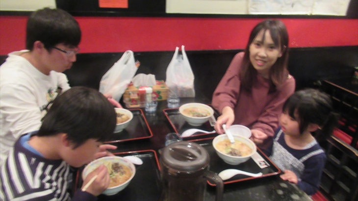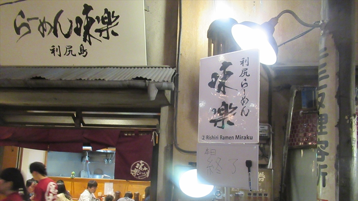 ミニラーメン2杯食べれば結構おなかいっぱい。でも3軒目に挑戦するために10分ほど行列に加わり、利尻昆布の旨みが凝縮された北海道利尻島の「味楽」の醤油味ミニラーメンを2杯注文、長女家族4名で21時23分に食べ始めました。