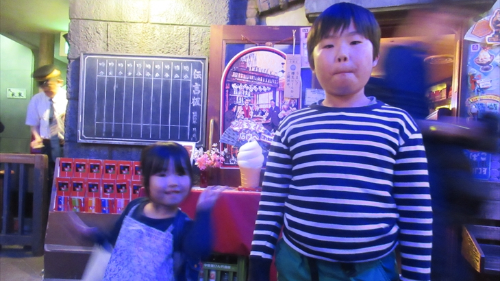 行列に加わっている間に孫達は地下1階の駄菓子屋さんで沢山買ってもらったようです。