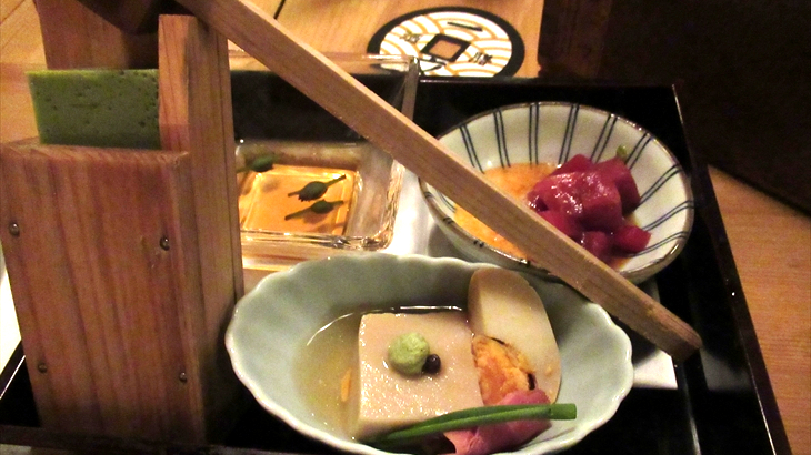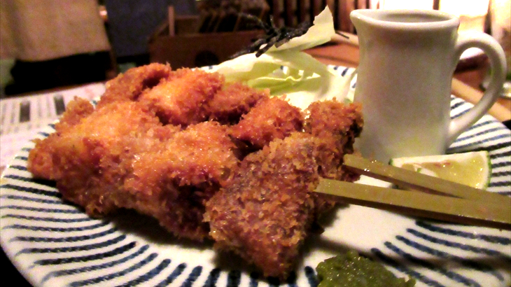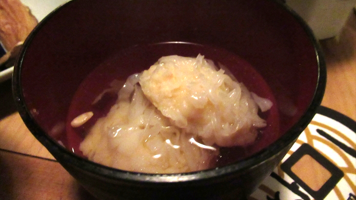 3点セットの前菜(高野豆腐、お刺身、トコロテン)の他にマグロの串カツとあなごの一本焼きをおつまみにして竹酒とともに頂きました。食べた時は美味しいと思いましたが、今となっては良く覚えていません。