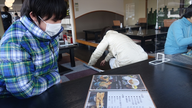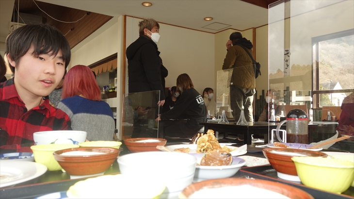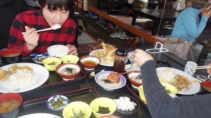 温泉入って、ゆっくりして、掃除と洗濯して帰宅準備を午前中に終え、お昼ご飯は安くて、美味しくて、ボリューム満点の地元人気のお食事処「大地」でランチしました。