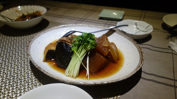 飲み物は焼酎ボトル「モグラ」、お料理の一番バッターも昨日と同じく蛸の唐揚げです。トシ君が選んだブリ大根とお赤飯は絶品でした。エビチリは3番バッター、4番の主軸はカレーです。「カレー、とても辛かった」とトシ君。19時から約2時間の夕食でした。