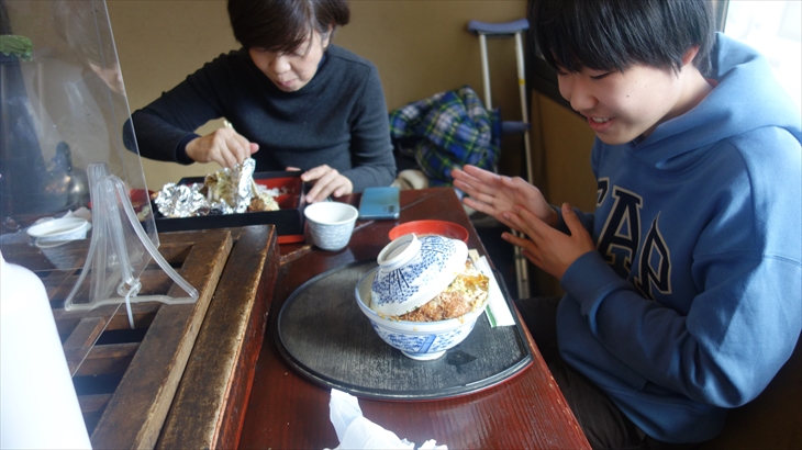 律子さんは日替わりお弁当、トシ君と私は蓋の閉まらないかつ丼。かつ丼が登場した時、トシ君の苦笑いが印象的でした。