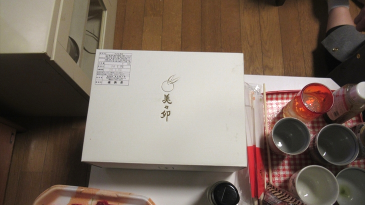 集合時間は18時、1名を除き全員集合しました。まだ来ないのは長女です、出がけに喧嘩したらしく行かないと言っております。どうにか説得し夕食開始は1時間半遅れの19時30分、お正月から困ったものです。お正月なのでお屠蘇からはじめました。