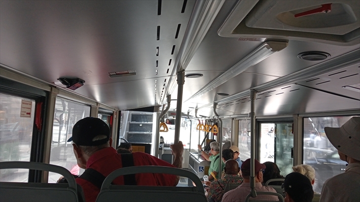 タイムズスクエアーにあるpop-on/pop-offバス停までタクシーで移動。行列がありましたがバス本数が多いので少ない待ち時間で2階席に乗り込めました。