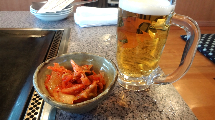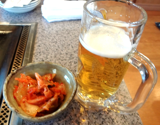 店内はお座敷席が3席、テーブル席が3席の24名体制。キムチを注文し、しばらくすると御婆ちゃん達がやってきました。まずは飲み物、ビールとホッピーを注文し乾杯♪
