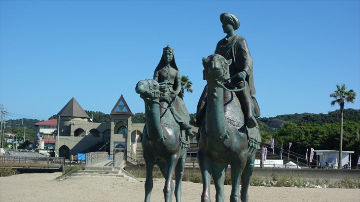御宿の海岸は童謡「月の砂漠」のモデルです。その海岸にラクダに乗った銅像があるので、それ目当てに御宿海岸へ行きました。到着したのは10時10分、広い海岸でした。