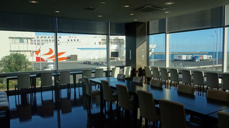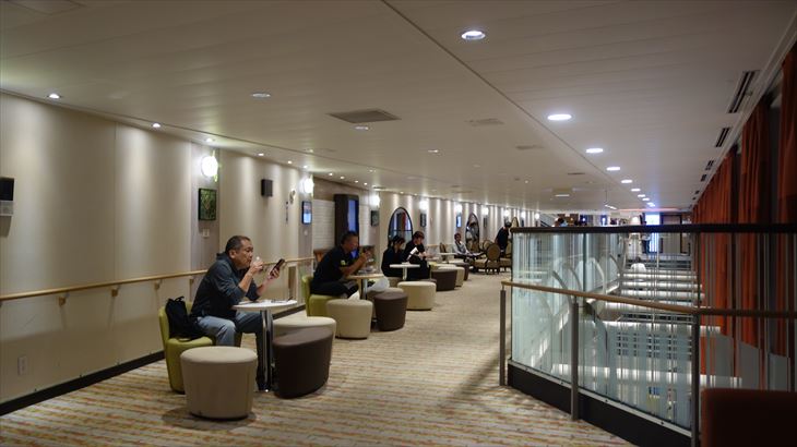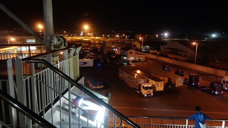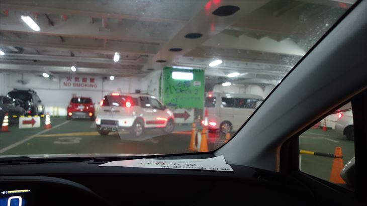 駐車場は1階、私の宿泊は5階。6階の後ろの席にパソコン、夕食を準備してゆっくりしてます。乗船時はガラガラでしたが出航した20時ころは7割程度埋まっています。でも、夏より空いてますね・・・