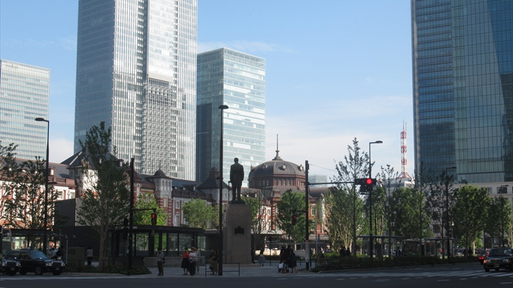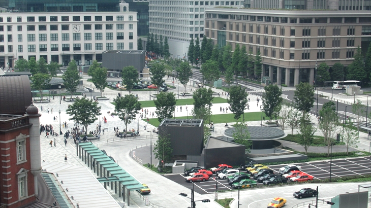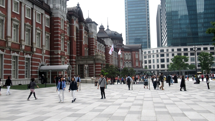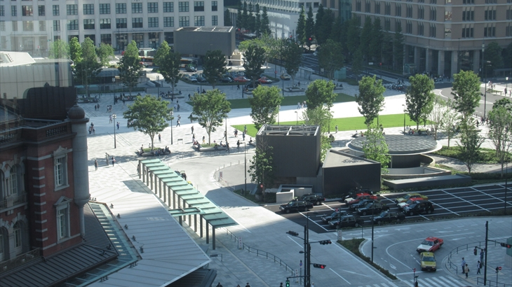 2年前、丸の内駅前の再開発が始まり今年訪れた時は完成していました。海外では広場を中心に人々が集まる感じがあります。