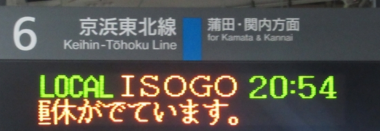 10時少し過ぎくらいで3次会も終了。10時54分の京浜東北線で帰宅しました。
