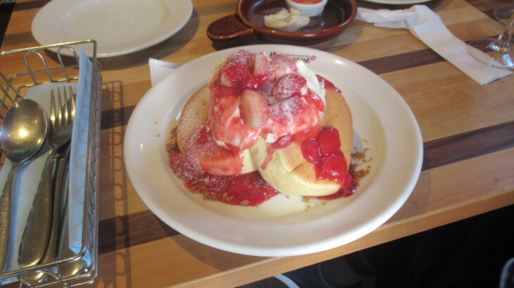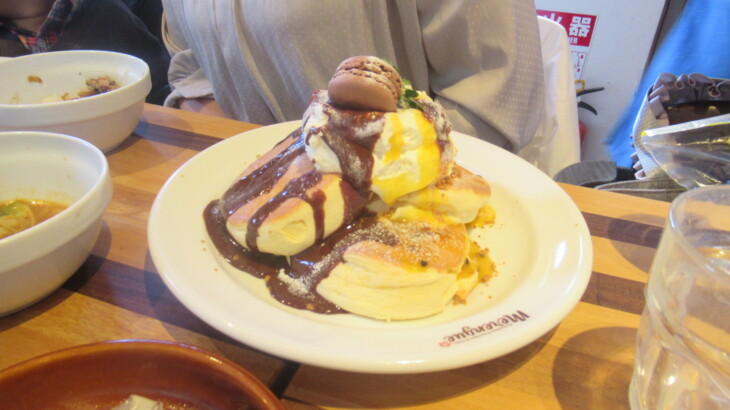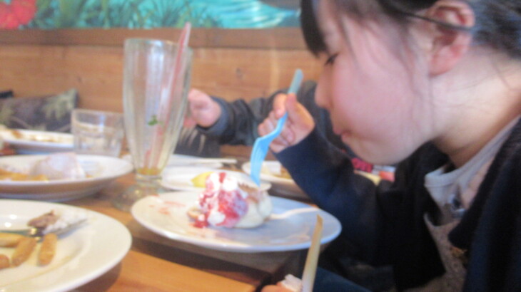 デザートはチョコレートパンケーキと苺のパンケーキ、子供達に大人気、ペロリと食べてしましました。約1時間30分のお昼ご飯の後、岸根公園に向かいました。お会計は16000円也、律子さんのお支払いでした。