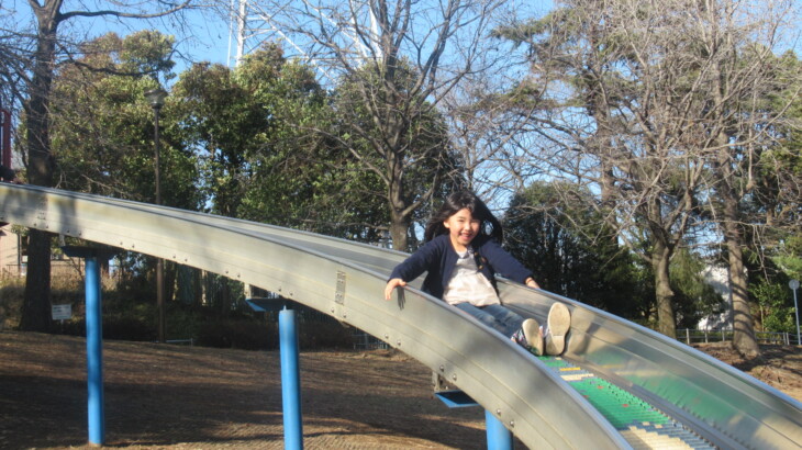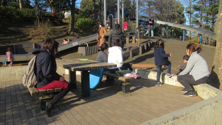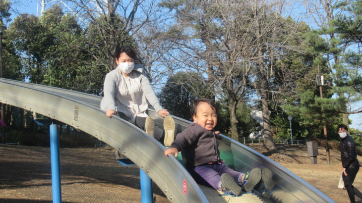 お天気が良かったので岸根公園ではたくさんのニューファミリー、人気スポットは滑り台付近、アヤちゃんと利太朗くんは大はしゃぎ、特に利太朗くんはあの長い滑り台を怖がらずに楽しみます。すごいですね・・・