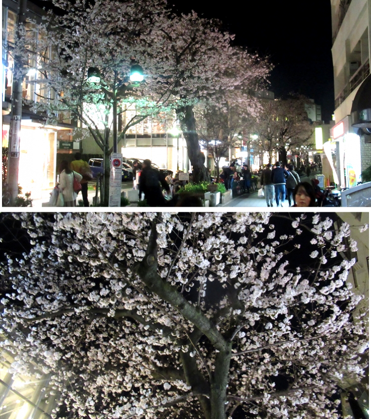 今年の桜は例年より少し早く開花し、東京地方は本日が満開宣言。自由が丘駅近くにある桜並木を皆でゆっくり夜桜見物と洒落込み、季節の変わり目を堪能~
