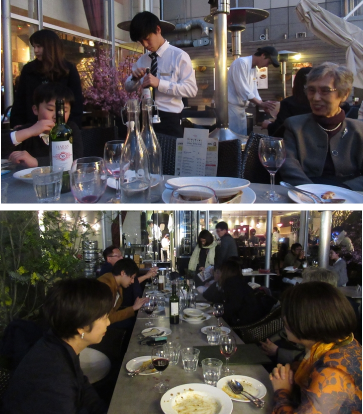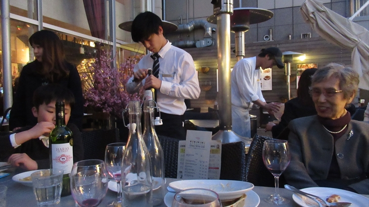 お店の方にテラス席の移動をお願いしてみたら頑張ってくれ、17時30分ころには全員で開放的なテラスにいました。