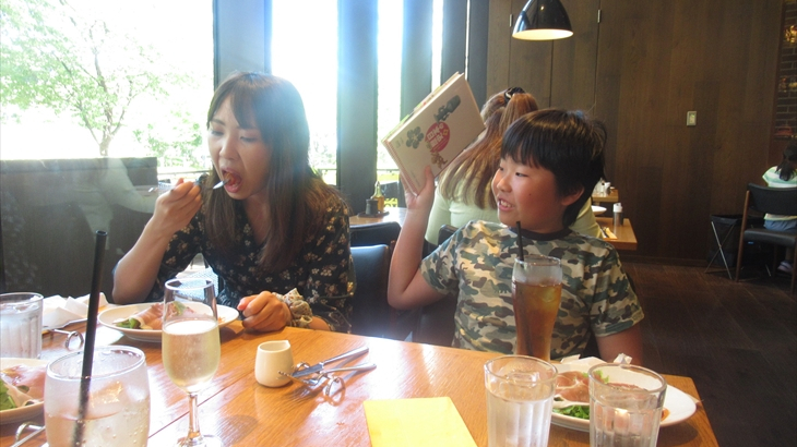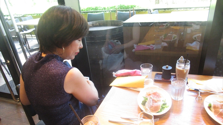 1時30分と少し遅めの入店だったので2,3組のお客さんしかいなく空いてました。ピザセットランチとパスタセットランチを各2つずつ注文。最初に生ハムが乗ったサラダ登場し、約1時間くらいでランチ終了しました。