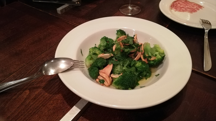 ブロッコリー料理と下仁田ネギのマリネを食べてる途中に2本目のワインボトル。