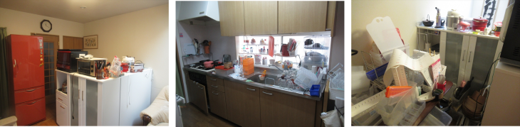 まづは台所用品とキッチン棚を移動、隙間家具は廃棄、最後に冷蔵庫を移動。整理をはじめた9月15日くらいから工事が終わる9月28日までの約2週間はキッチン利用不可のため外食などでしのぐことになりました。