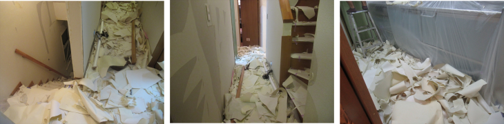 3階の一部の既存クロスの剥がし作業。下地を整え、3階部分のクロス貼り完了。