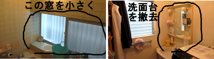 お風呂リホームの目的は気分転換だけでなく在来工法のタイル風呂は寒いこと、掃除が簡単に済むこと、大きな窓が防犯上不安。この3点を解決するために決断しました。