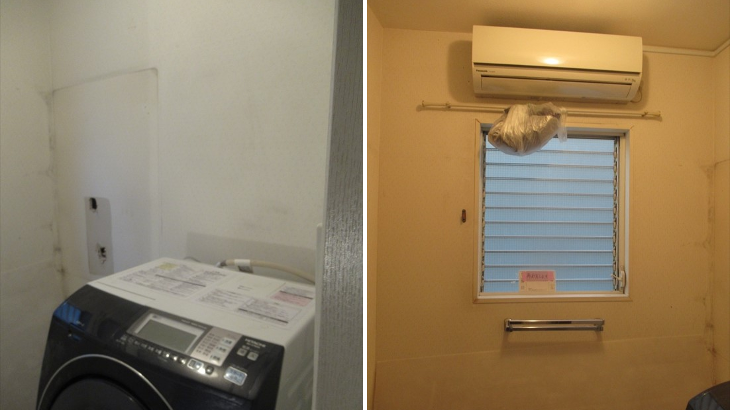 追加でお願いした洗面所のリホームは、床を全部剥がして補強、壁紙交換、既存の洗面台の撤去です。洗面所に設置予定の棚関係は別途ニトリ等で調達することにしました。リホーム会社の方からその方がリーズナブルにできるとアドバイスを頂きました。