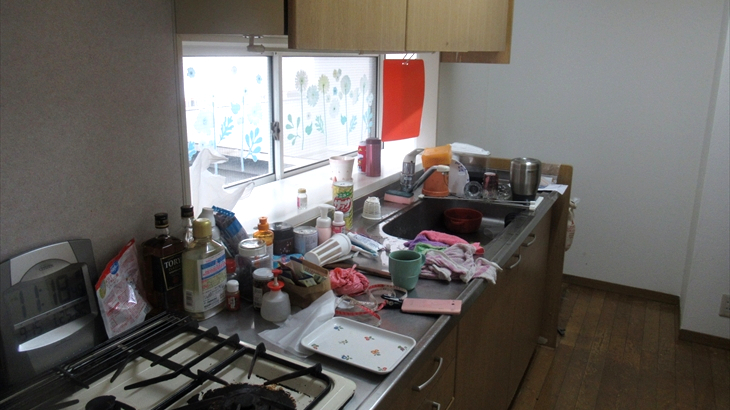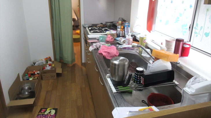 まづは台所用品とキッチン棚を移動、隙間家具は廃棄、最後に冷蔵庫を移動。整理をはじめた9月15日くらいから工事が終わる9月28日までの約2週間はキッチン利用不可のため外食などでしのぐことになりました。