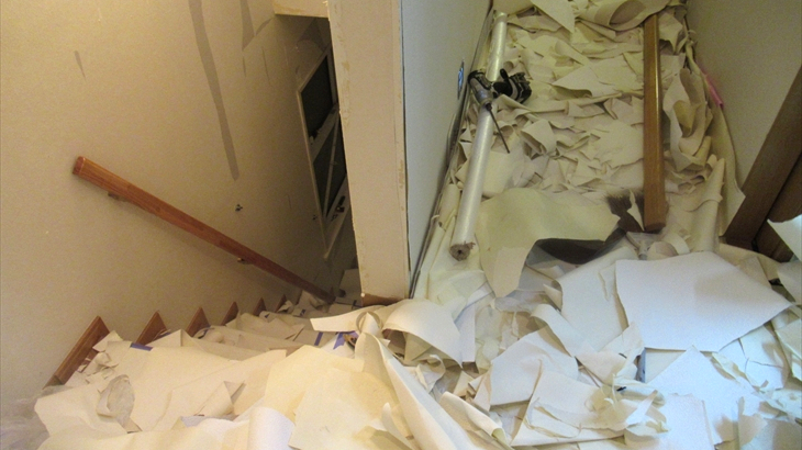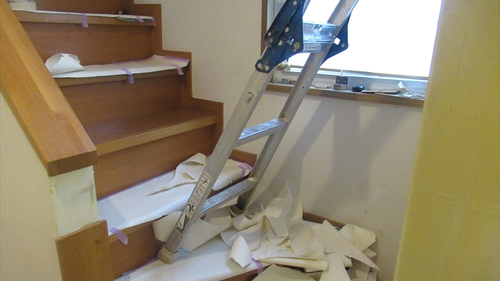 3階の一部の既存クロスの剥がし作業。下地を整え、3階部分のクロス貼り完了。
