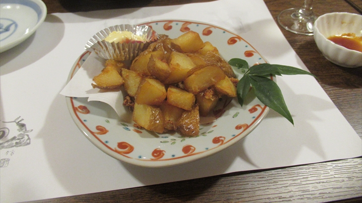 全て丁寧なお料理でさすがと言う感じです。子供達にはガーリリック味のポテトフライが人気、大人達にはカレイの唐揚げと大盛り肉ジャガが人気、うなぎの白焼きは特定の人に好評だったようです。