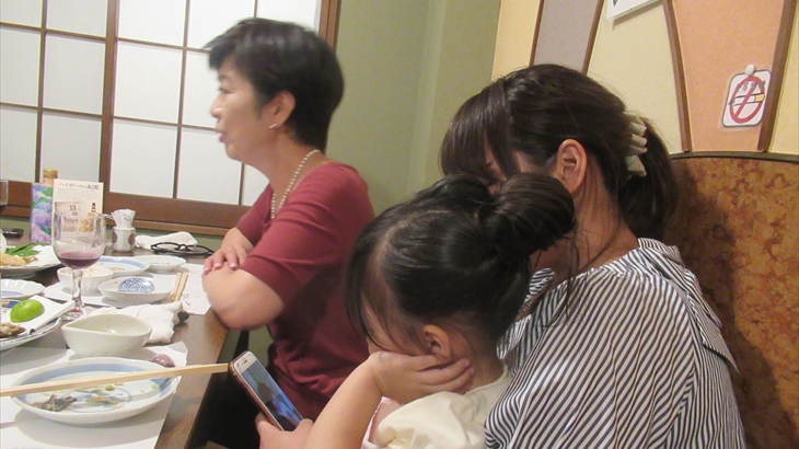 小学校4年生の孫はうな重を完食、うな丼(1)、西京焼き(1)、ほや(1)、なすと揚げ出し豆腐(1)、カツオのカルパッチョ(1)などを自由注文し会食を楽しみました。