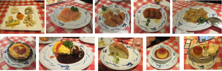 最初に律子さんの挨拶、スパークリングワインボトルで献杯。前菜5点盛りを2セットとサーモンマリネを注文し会食が始まりました。三笠会館特製の骨付き唐揚げ、クリームコロッケ、ドライカレー、グラタン、チキンライス&ハンバーグなど、全てとっても美味しかったです。