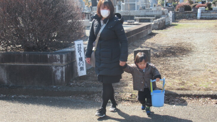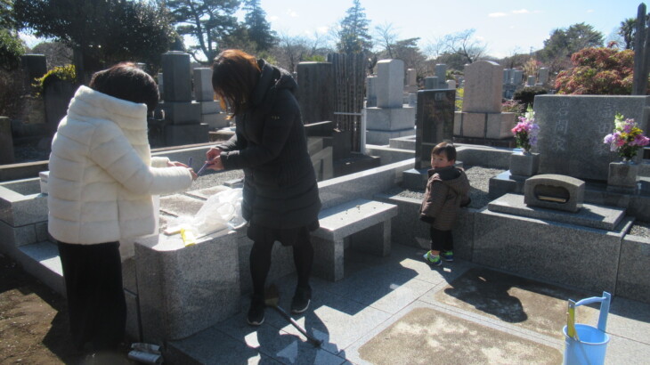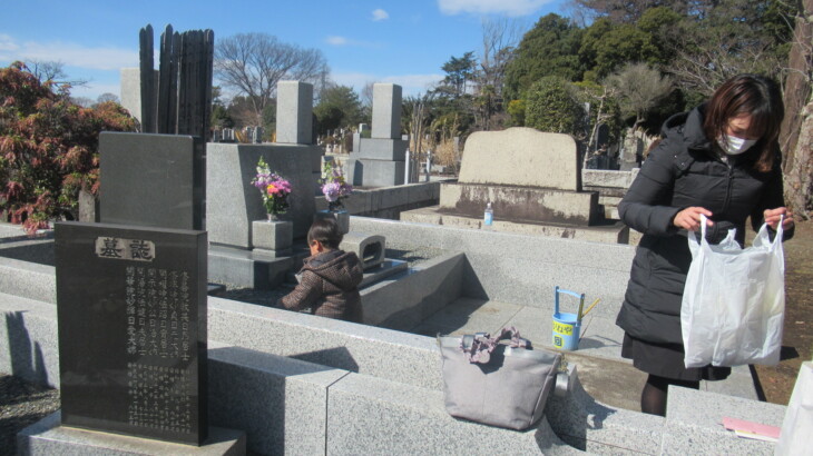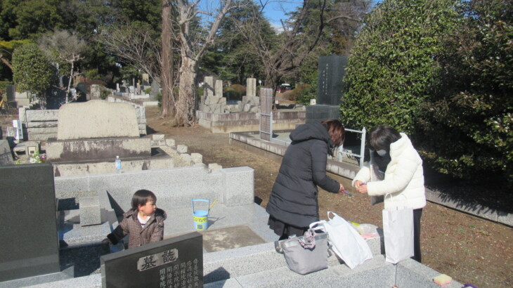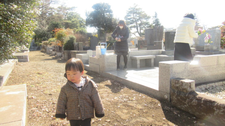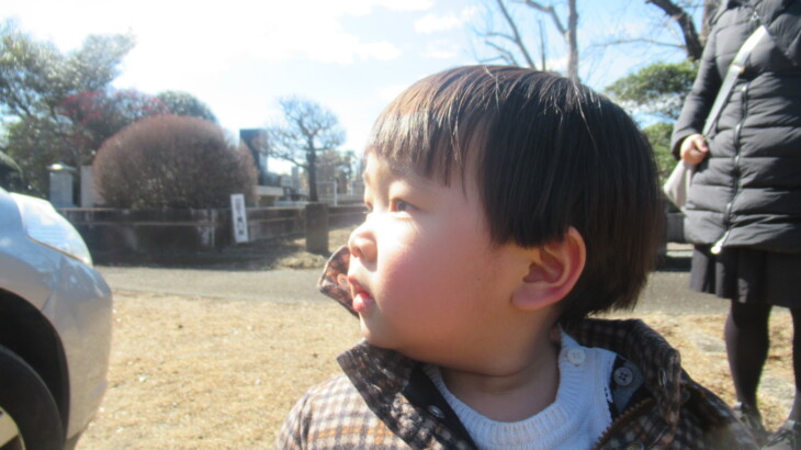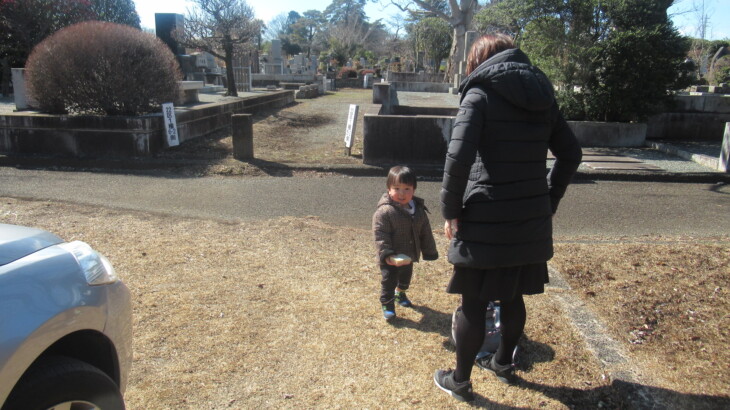 朝9時40分ころ出発、次女達を迎えに行き4月から利太朗くんが通う保育園を経由して多磨霊園に到着したのは12時14分。お墓の前の枯葉が綺麗に掃除されていたのは初めて、お花を飾り、お線香をあげ順番にお詣りしました。