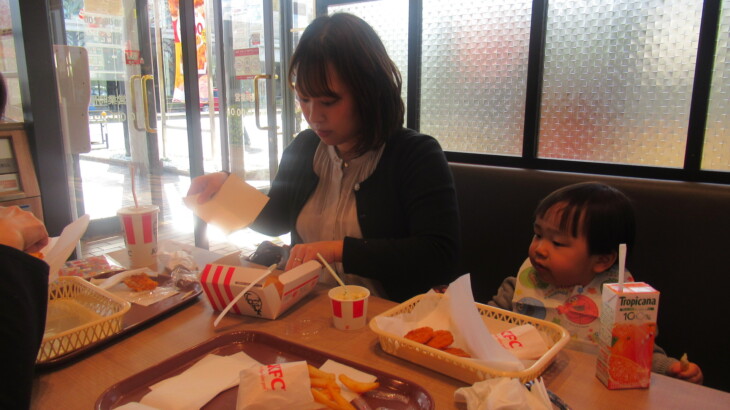 ケンタッキーで昼食、元住吉の実家に一旦もどったのは15:00ころ、昭子さんが掃除をしていました。