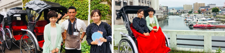 札幌から小樽は電車で40分(40km)程度、小樽運河に立ち寄り、全国展開しているお店「えびす屋」の人力車に乗ってみました。小樽運河の浅草橋から運河を30分かけて一周する「小樽浪漫の旅(9000円:2名)」です。
