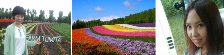 毎年100万人もの観光客が訪れる日本最大級のラベンダー畑「ファーム富田」、美瑛の四季彩の丘でトラクターのバス「ノロッコ号」に乗り、丘の景色・大雪の山と花畑を見学しました。