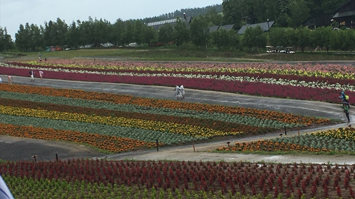 朝食はホテルWBFノースゲートの和洋約50種類のバイキング。少し雨模様ですがHISで予約しておいた観光バスへ乗り込み富良野までバス旅行。富良野は北海道のほぼ真ん中、札幌から約2時間(120km)かかります。