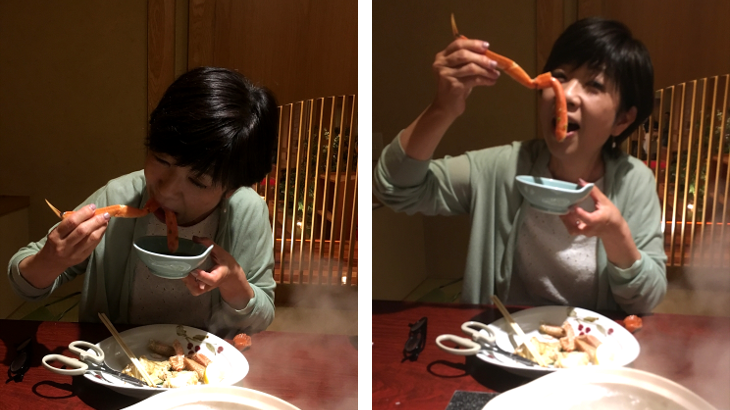こんな状況だと食事にも行けないというSOSの電話があったので、調整の結果、長女の旦那様が年休を取り送迎することで決着。カニを美味しく食べたようです。「カニはやっぱり無口になってします」が感想だったようです。