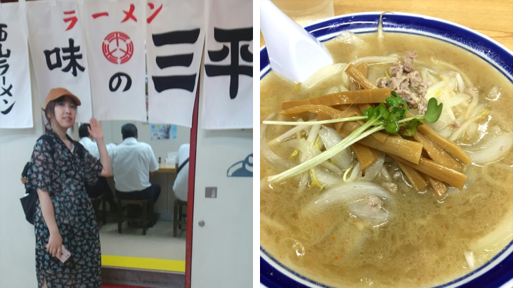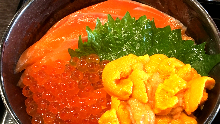 ホテルの朝食をパスして朝市で長女が楽しみにしていた観光地値段(3000円)の三色丼(イクラ・うに・サーモン)を頂き、お土産などを購入、お昼ご飯は味噌ラーメンで有名な三平。