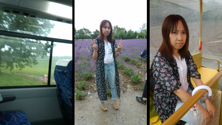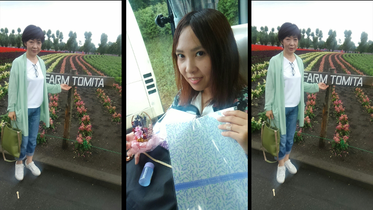 毎年100万人もの観光客が訪れる日本最大級のラベンダー畑「ファーム富田」、美瑛の四季彩の丘でトラクターのバス「ノロッコ号」に乗り、丘の景色・大雪の山と花畑を見学しました。