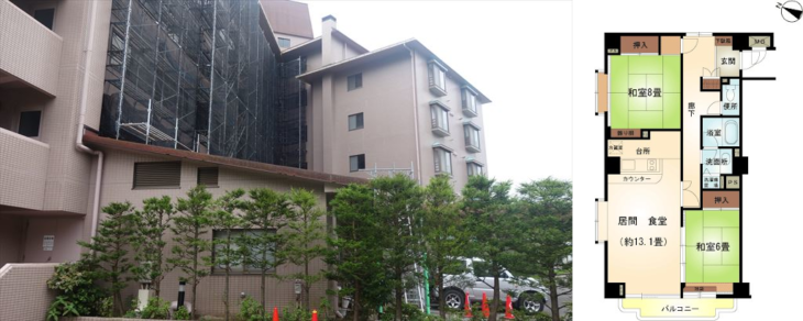 案内されたのは2階の角部屋。道路を挟んだ向かい側の土地には低層階(2階建て)ホテルが建設中、借景になるかも。日当たりの良い窓からは仙谷原のすすきが原が眺めました。69.5平米あるお部屋は使いやすそう、壁紙等の目に触れる部分とキッチン等の一部設備のリホームに200万円くらい必要かな。