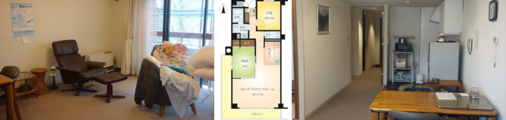 仙石原唯一の地元不動産屋の箱根不動産、本物件を扱ってるのを思い出し30日の朝、内覧をお願いするとあっさりOK。11時30分ころから見せてもらうことに。エレベータ3階で降りると1平米ほどのお隣さんとの小さな共有スペースにある玄関、変わってるね。お部屋の中は整理・清掃されていて綺麗、カーテン・壁紙などはそのまま利用可、リホーム無しでも利用可能。日当たり、眺望も問題なし。残念なのはお部屋の形かな・・・