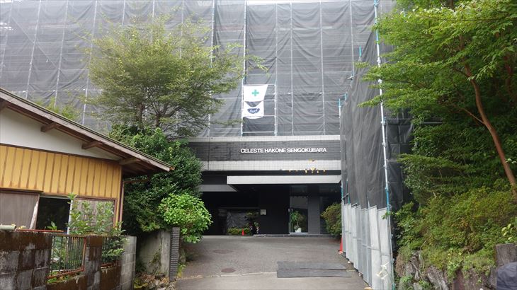最初に自主見学(お蕎麦食べる前)したのはお蕎麦屋さんから歩いてすぐの大規模修繕中のセレスト箱根仙石原(600万円)。外階段を上がりチョット見学、外にある廊下からの玄関はどこもうす汚れていた。この物件、ここで少しテンションダウン。
