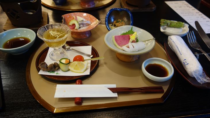 仙石原に到着しお昼ご飯しって、車で自主見学、本日の宿の「箱根仙石原ホテル花月園」に到着したのは16時ころ、昭和37年に建設された古いホテルでしたが、館内は綺麗にしてました。温泉にゆっくり浸かって、夕食は17時30分から。