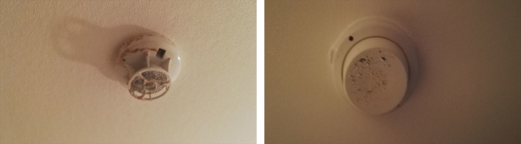 熱感知器が管理室の制御盤と連動していることが後日判明。天井工事する時に熱感知器を外さなければなりません。その時、熱感知器が差動してマンション内で火災警報のベルが鳴ったらいやなので、この消防設備を導入した小田原の相日防災(株)に作業をお願いすることにしました。1個移設するのに3万円と高額です。